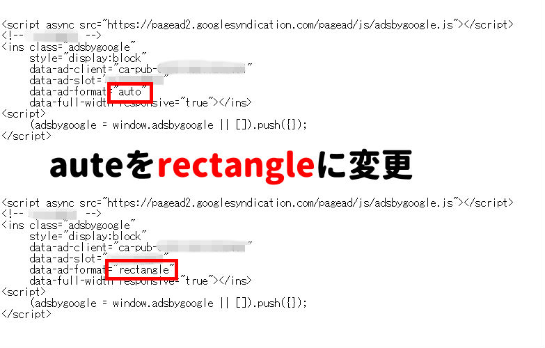 そしてこのコードの中にある「auto」を「rectangle」に変更してからワードプレスの設定の中に入れておきます。